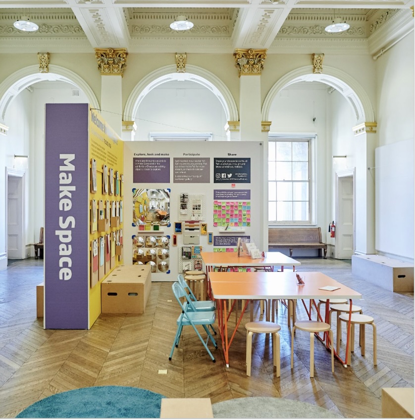 Engagement space creation & design / developing and initiating the Make Space model for National Museums Liverpool at the Walker Art Gallery & International Slavery Museum in collaboration with Curatorial and Exhibitions colleagues. This includes the most expansive version of this concept, FORUM, which was an embedded space in the Coming Out: Gender, Sexuality & Identity exhibition at the Walker Art Gallery. This created an accessible, inclusive and welcoming space for exploring creativity and connecting to artwork and ideas within gallery settings as an integral part of the visitor experience. It also created a space for community and audience voices and experiences to be shared, seen and heard. I also developed engagement spaces and resources for Arts Council Collection’s touring exhibitions, Breaking the Mould and Lubaina Himid: Found Cities, Lost Objects.